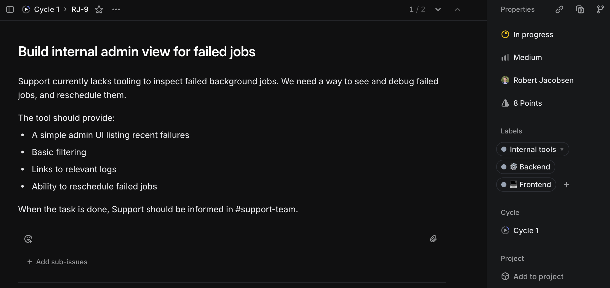 First, I want to stress how important it is to have a good title and a description that explains why something needs to be done. The title will often be what people see and remember the task by in every planning session, backlog refinement workshop, or standup.
