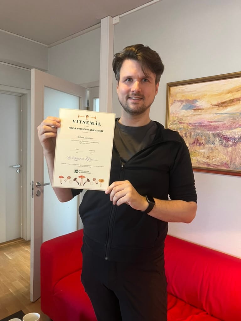 Just over a week before the exam, I attended an event in Oslo. Oslo’s local association hosted what is called an “examination table”. This is where a lot of different mushrooms are displayed and you can test your skills on them. I met a lot of candidates who were deeply into the identification.