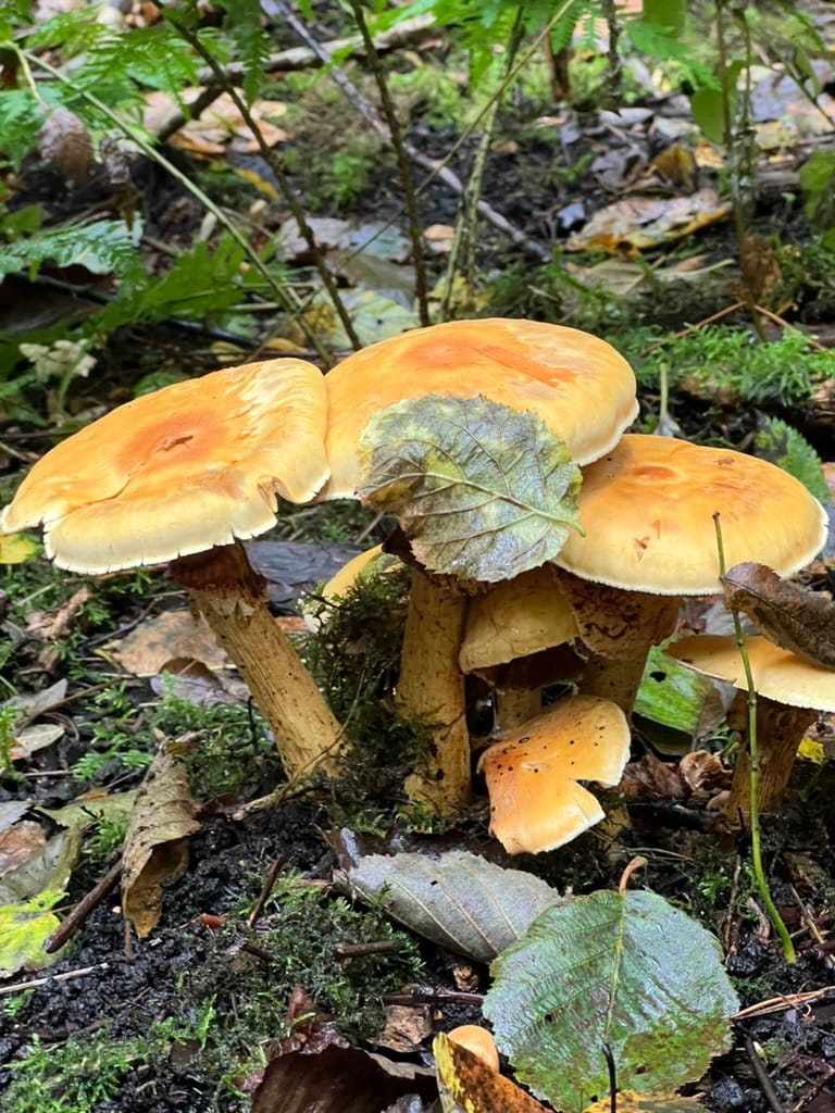 Summer kept the dryness up, which didn’t bode too well for the mushroom season. I went up north to my parents, found a few mushrooms around. It was early, but I managed to find and identify sheathed woodtuft (Kuehneromyces mutabilis) as one of a handful of mushrooms. During July, russulas started popping up and we started getting a tiny bit more diversity, but they were small, few, and far between. I spent this month on categorizing, learning, and figuring out mushrooms.